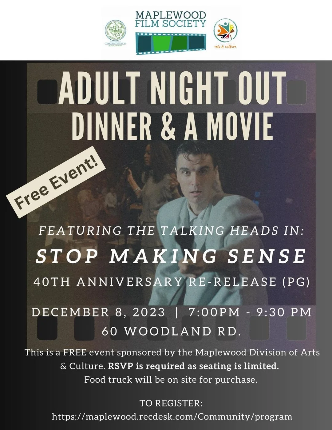 Featuring the Talking Heads in Stop Making Sense. 40th anniversary release. Food truck on site.